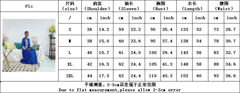 S: длина 133 см, обхват груди 90 см, рукав 59 см, ширина плеч 36 см, обхват талии 73 см M: Длина 138 см, обхват груди 95 см, рукав 60 см, ширина плеч 38 см, обхват талии 78 см L: Длина 143 см, обхват груди 100 см, рукав 61 см, ширина плеч 40 см, обхват талии 83 см XL: длина 148 см, обхват груди 105 см, рукав 62 см, ширина плеч 42 см, обхват талии 88 см 2XL: Длина 153 см, бюст 110 см, рукав 62 см, плечо 44 см, талия 93 см