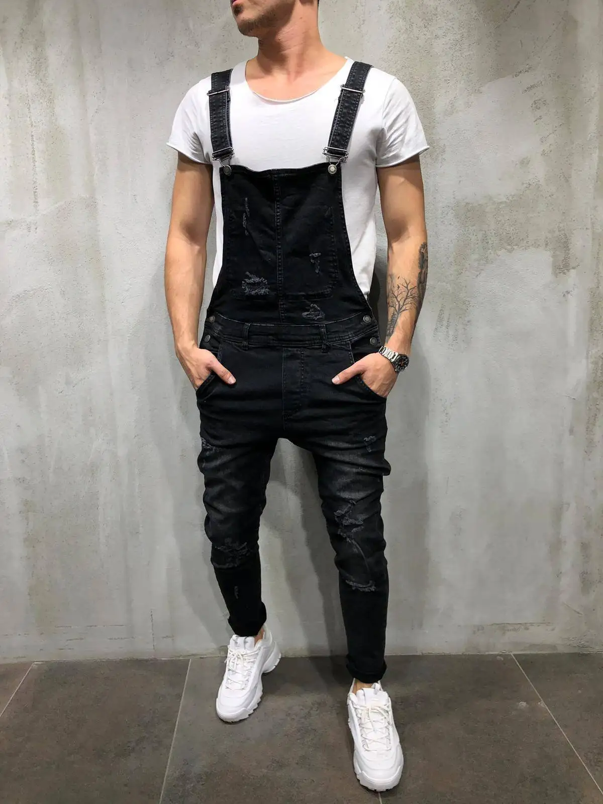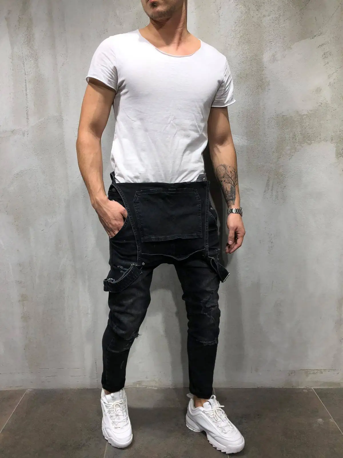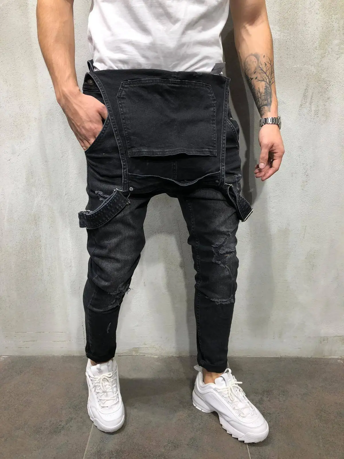 Стильный мужской комбинезон рваные штаны байкерские штаны черные брюки 2019 повседневные открытые мужские Нагрудники уличная одежда Новинка