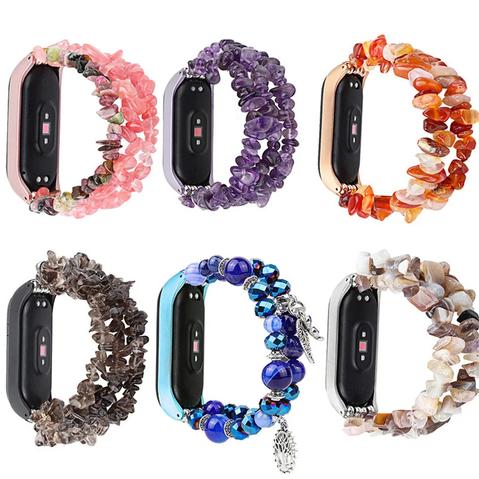 Браслет женский для Mi Band 4/3 Смарт аксессуары агат Кристалл ручной работы ремешок