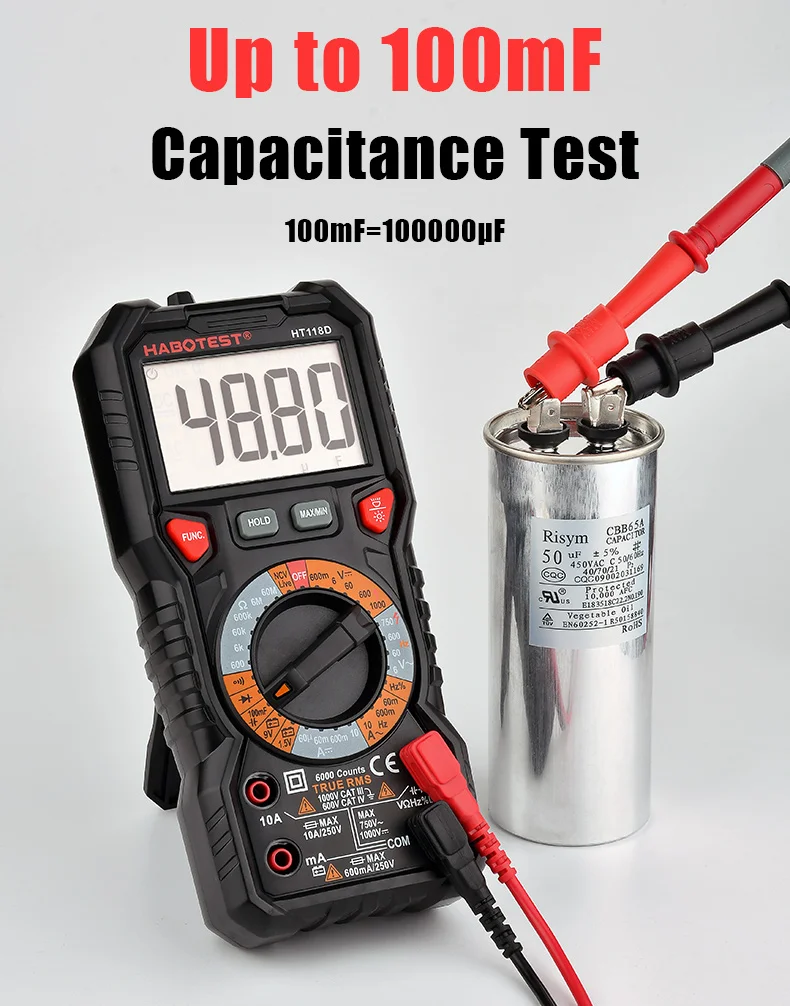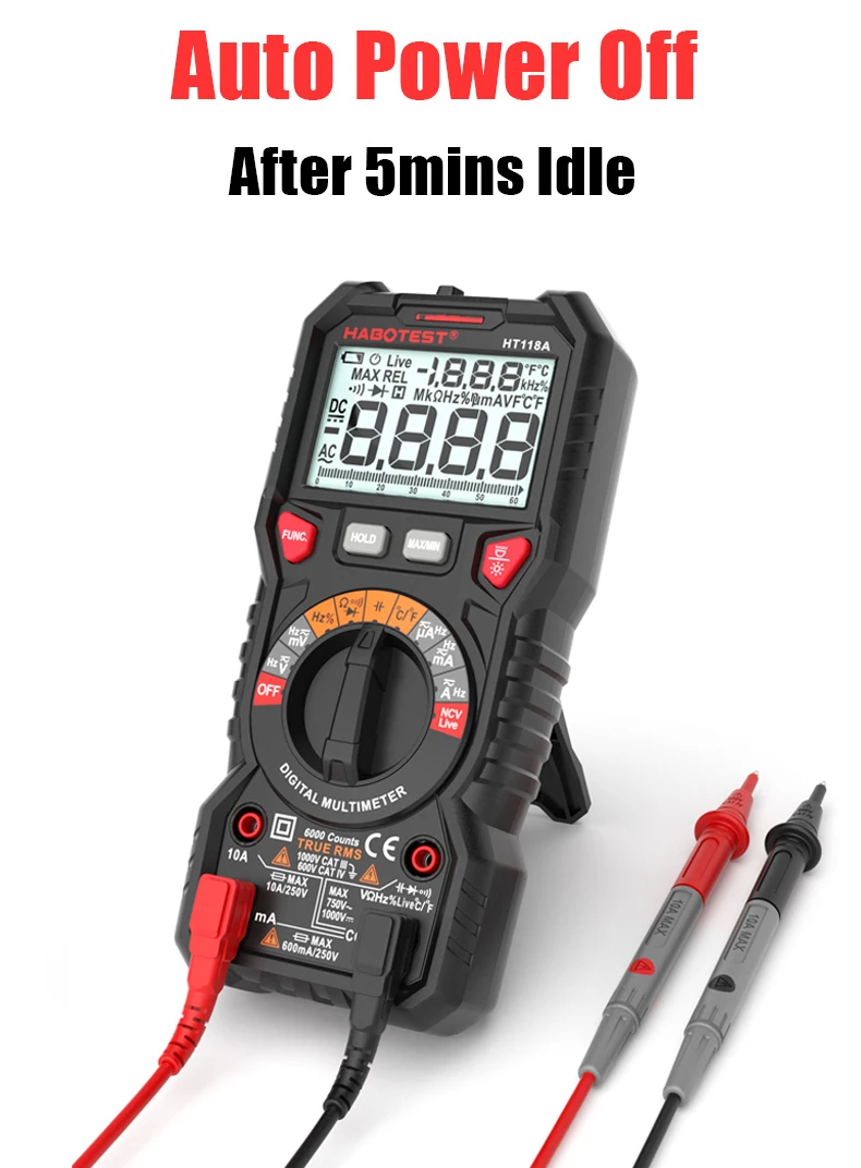 Цифровой мультиметр Профессиональный Автомобильный мультиметр HT118A Авто Диапазон True RMS 1000 В AC DC Ом Емкость Гц Тестер HABOTEST
