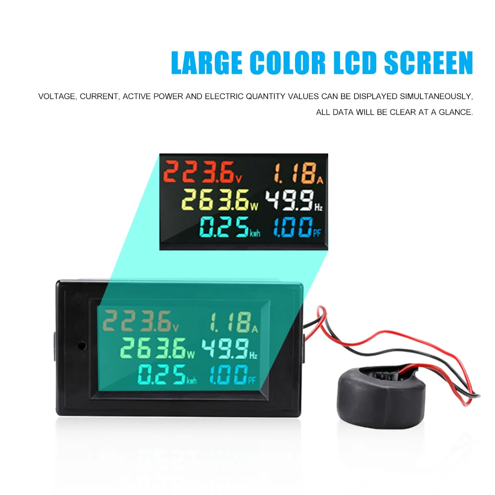 Большой цветной ЖК-экран:Напряжение, ток, активная мощность и электрические значения количества могут отображаться в ярком цвете между тем. Все данные будут четкими с первого взгляда.