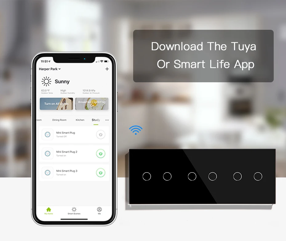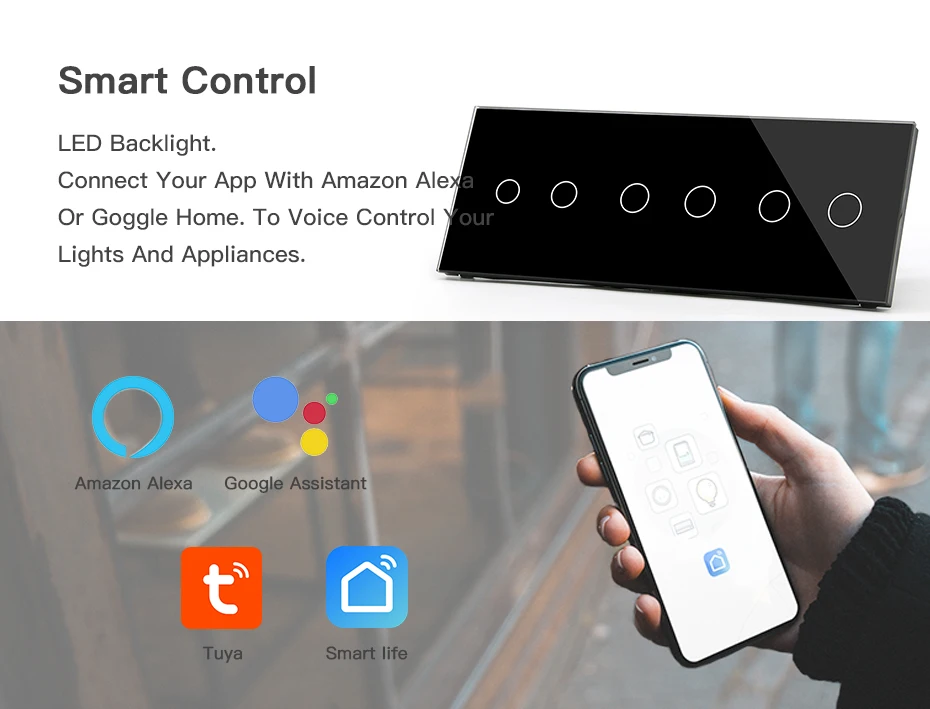 BSEED WIFI 6 банд 1way сенсорный светильник, переключатель, стекло, Смарт Настенные переключатели, сенсорный экран, светодиодная подсветка, светильник Google Aleax, приложение Smart Life
