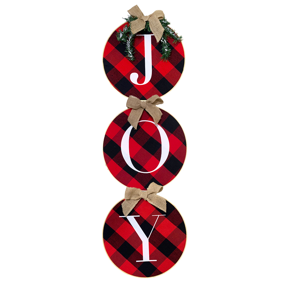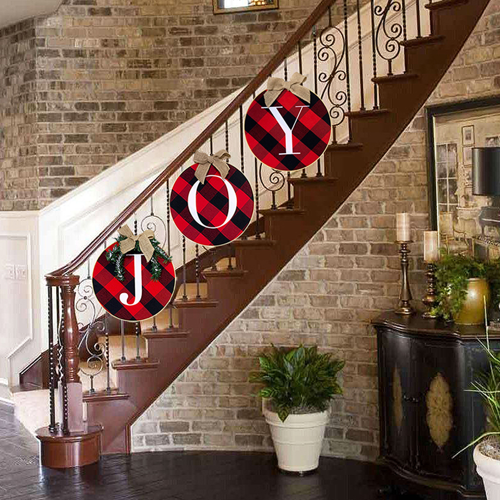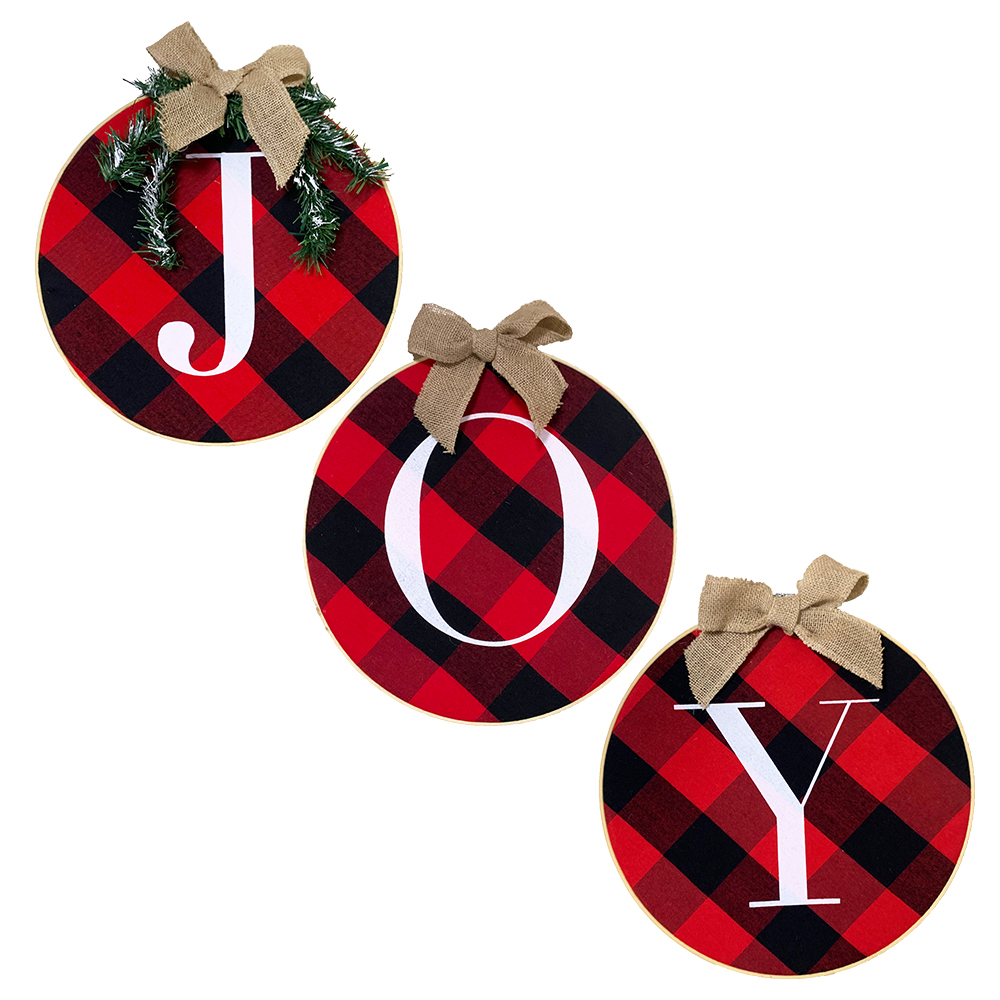 -Есть 3 венка в клетку buffalo. Повесьте их горизонтально или вертикально, чтобы изложить слово JOY.