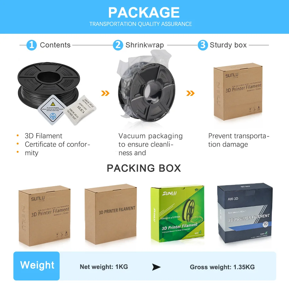 2. Последняя партия продуктов, прибывающих на зарубежные склады, является нейтральной упаковкой (без логотипа SUNLU). Новая и старая упаковка будет отправлена случайным образом.