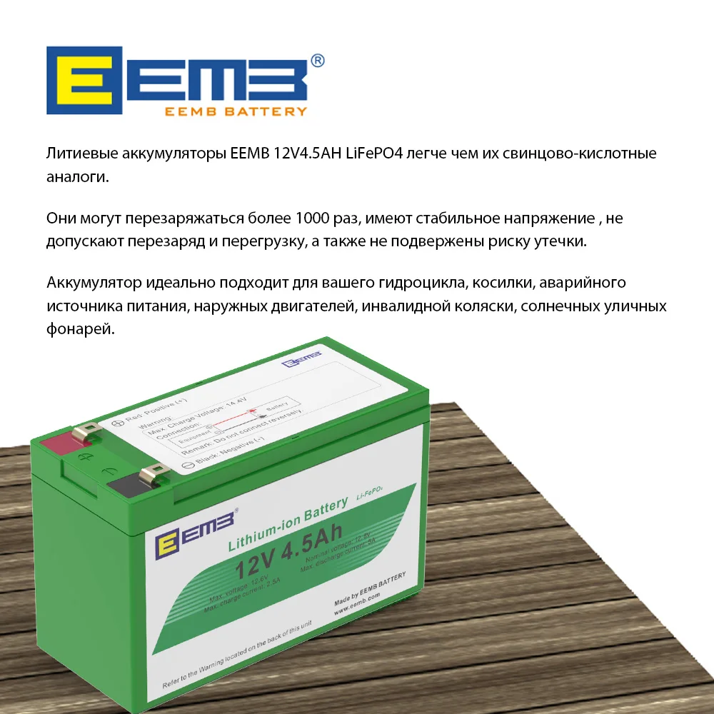 12V 4.5Ah Литиевые аккумуляторы EEMB 12V 4.5AH LiFePO4 амортизационный киллотные и гелевые аккумуляторы.