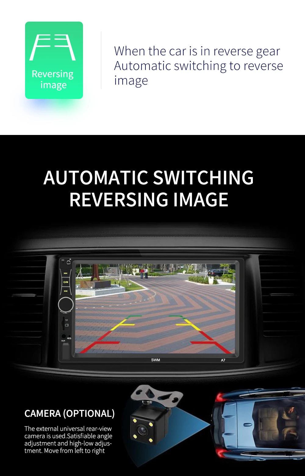 Когда автомобиль находится в обратной передаче, автоматическое переключение на обратное изображение Камера (опционально) Используется внешняя универсальная камера заднего вида. Приемлемая регулировка угла и высокая-Низкая регулировка. Перемещение слева направо