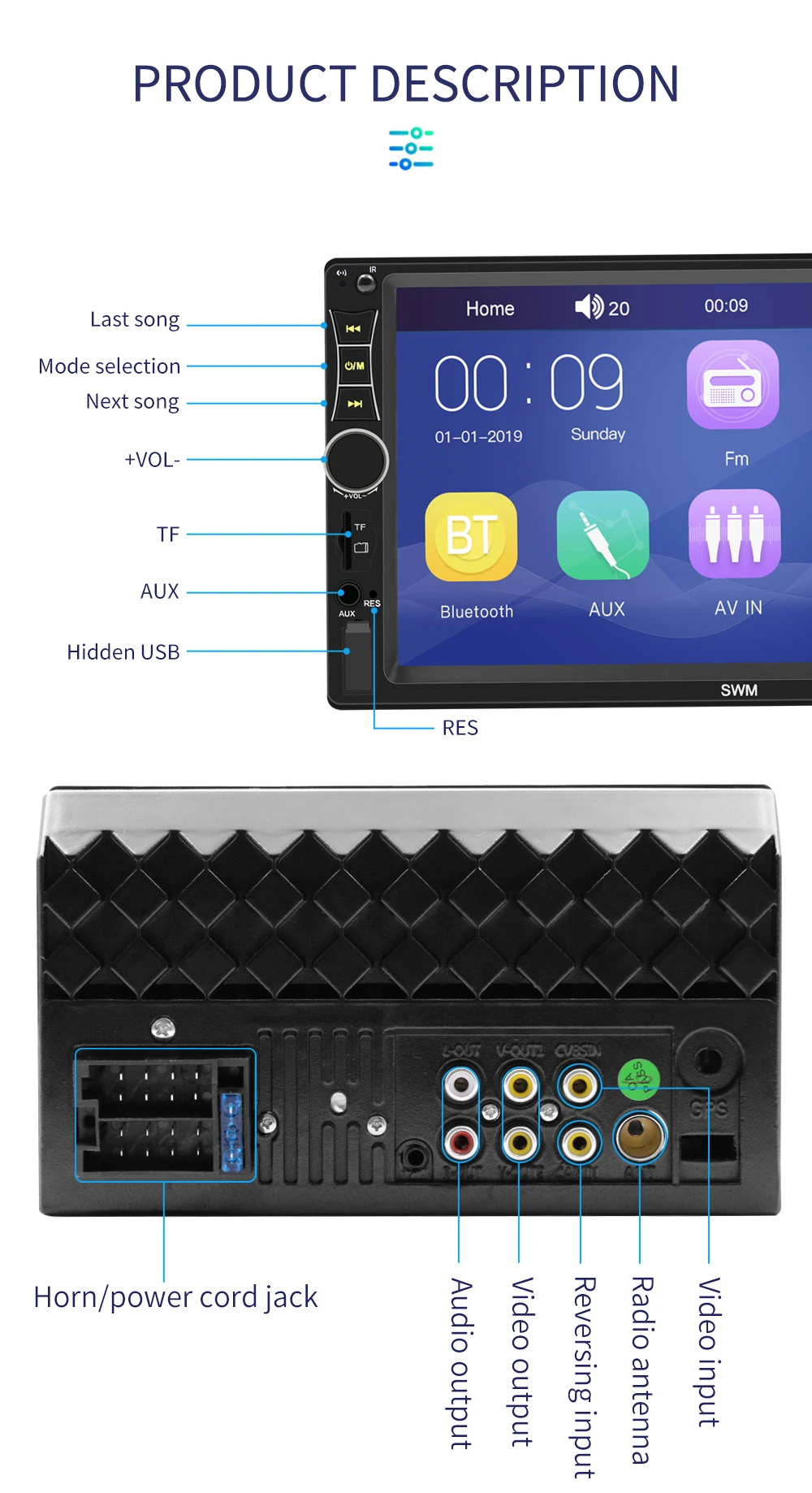 Функция fm-радио, вы можете слушать трафик в реальном времени, новости вещания прогноза погоды и т. Д., сделать скучное Вождение менее монотонным. RCA аудио выход Соединительный сабвуфер