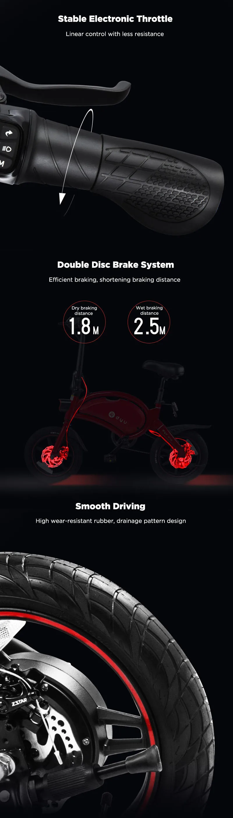 Торговая марка: Дю Емкость батареи: 10AH Модель: D3F Чисто Электрический пройденное расстояние в милях: 20-25 км Цвет: Черный Помощник пройденное расстояние в милях: 20-40 км Материал корпуса: Утюг Входное напряжение: 100-240V Тела Вес упаковки: 17 кг Напряжение при зарядке: 42V DC Максимальная нагрузка: 120 кг Время зарядки: 4 часа Метод торможения Передние и задние двойные дисковые тормоза Номинальная мощность: 250W Высота сиденья Регулируемый подъема Скорость движения: 20 км/ч Водонепроницаемость при давлении до уровня: IP54 Максимальная скорость: 25 км/ч Размер в сложенном виде: 1160x290x740mm Приложение: Нет приложения Расширьте размер: 1160x500x990mm Комплект поставки:1 х DYU D3F Электрический велосипед