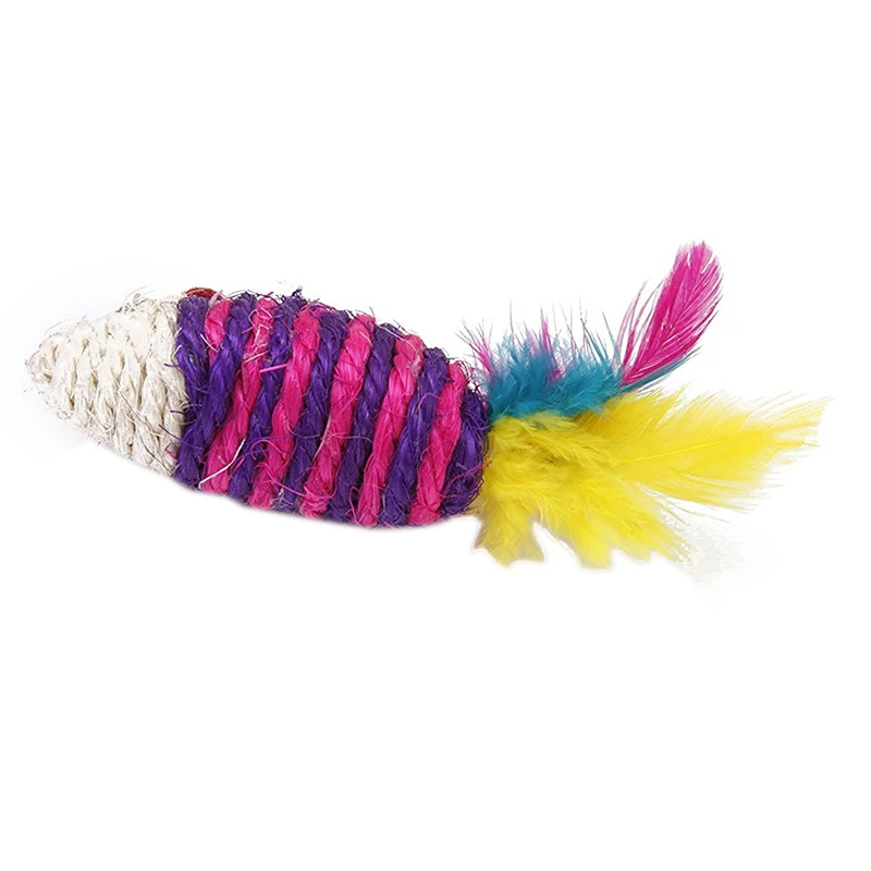 Игрушка вязаная мышь Когтеточка для кошки разноцветные