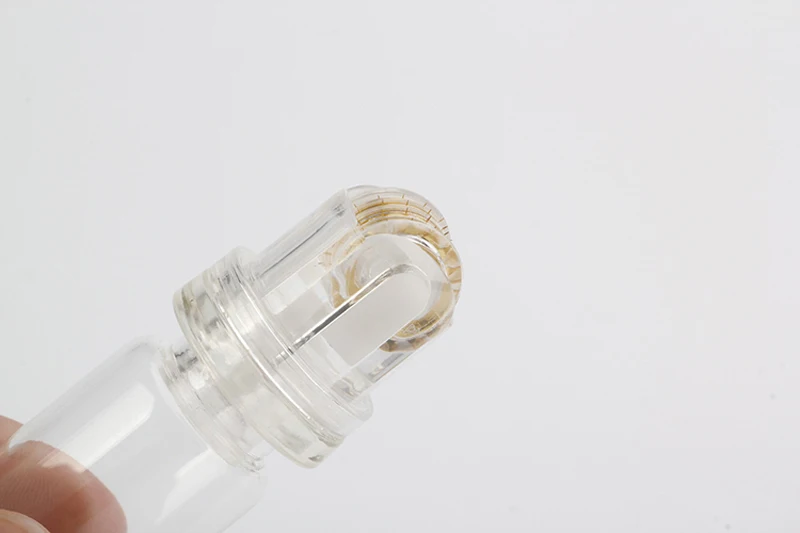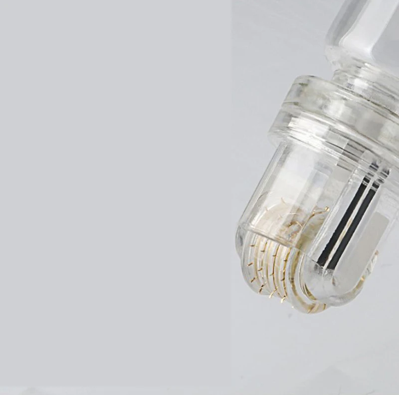 Microneedle Hydra Skin Roller Automatic Therapy System Certification: CE / ISO13485 / RoHS / PSE medical Needle number 64 points of mciro-needle Material Titanium / medical stainless steel with gold plating / polycarbonate / high strength silicone needle + glass bottle Color: gold + transparent Bottle capacity: 10ml (the roller head is generally applicable to the 5 ~ 50ml blister in the market) Application: absorption, wetting, renewal, shrinkage pore, AcneScar, crow's feet, Lifting64 Mciro needle tips Characteristics: 3 sizes here effective and safe 100% brand new and high quality High quality microneedle system Effectively improves scars, stretch marks, acne, etc. Promotes blood circulation and makes your skin tighten, elastic It can be applied over the whole body, arms, hands, legs, thighs, body, abdomen, face, etc. Made of titanium material, friendly and harmless There are no side effects on the human body, please be sure to use Using the instructions: 1. Clean your hands and the part that needs to be cured 2. Use cleansing and antibacterial gel to clean your hand and ski
