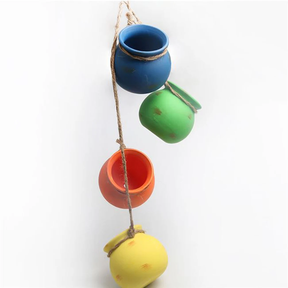 -Коричневый джутовый канат, соединяющий 4 горшка, имеет петлю, предназначенную для подвешивания от стены или потолка.
