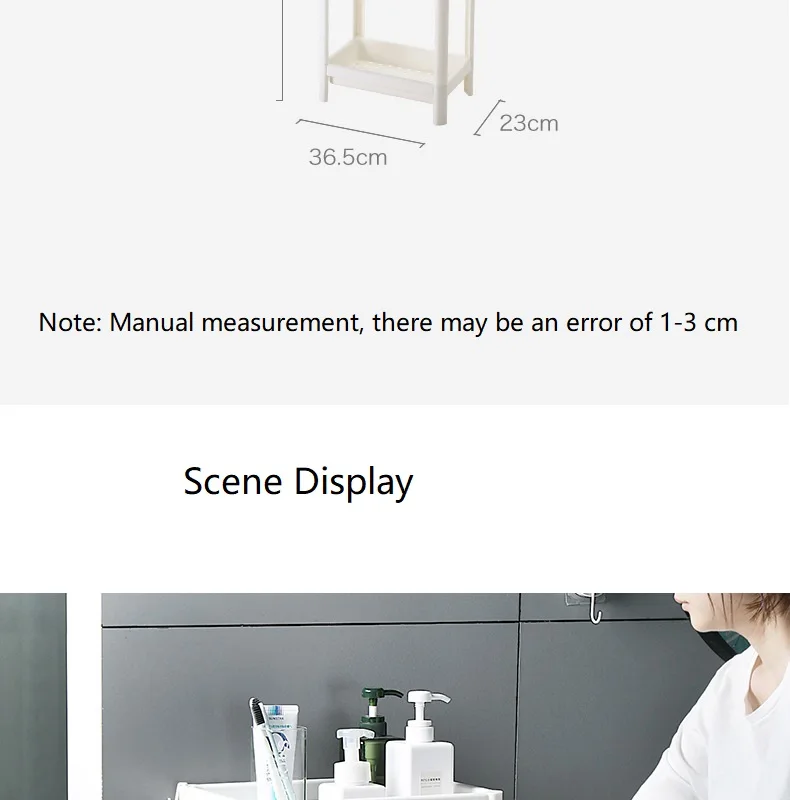 Название продукта: стеллаж для хранения ванной комнаты Материал: пластик Спецификация: слой 2, слой 3, слой 4 (подробные размеры см. На рисунке ниже) Цвет: белый (по умолчанию), абрикосовый (обратите внимание на сообщение о заказе, если вам нужно)
