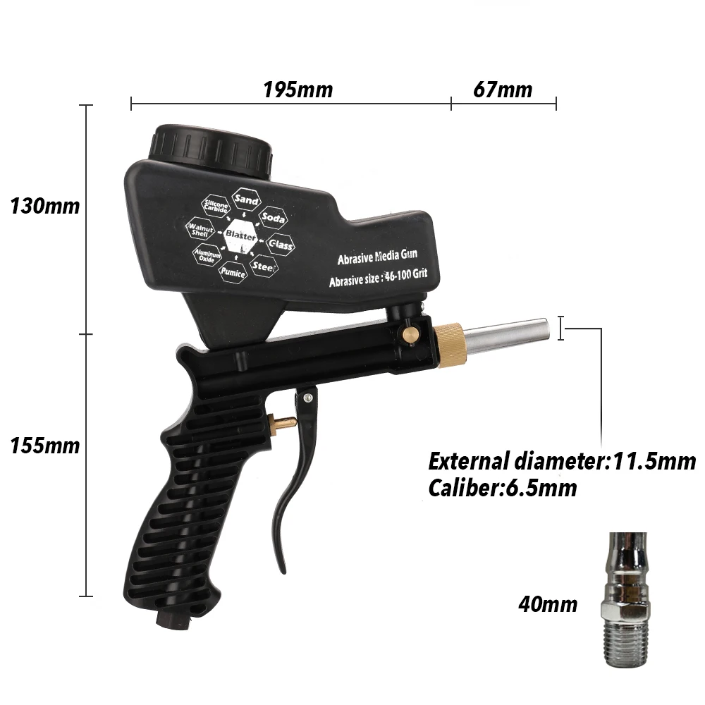 Эта легкая пескоструйная машина поможет вам уменьшить ненужные поверхностные материалы, такие как ржавчина, краска, масло и другие стойкие пятна. Он не только прост в переноске, но и прост в эксплуатации и удобен. Поэтому, если вам нужно очистить ржавую и грязную поверхность или просто протереть некоторые металлические детали, инструмент будет работать быстрее и будет иметь большую эффективность.