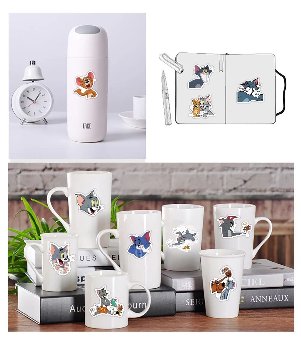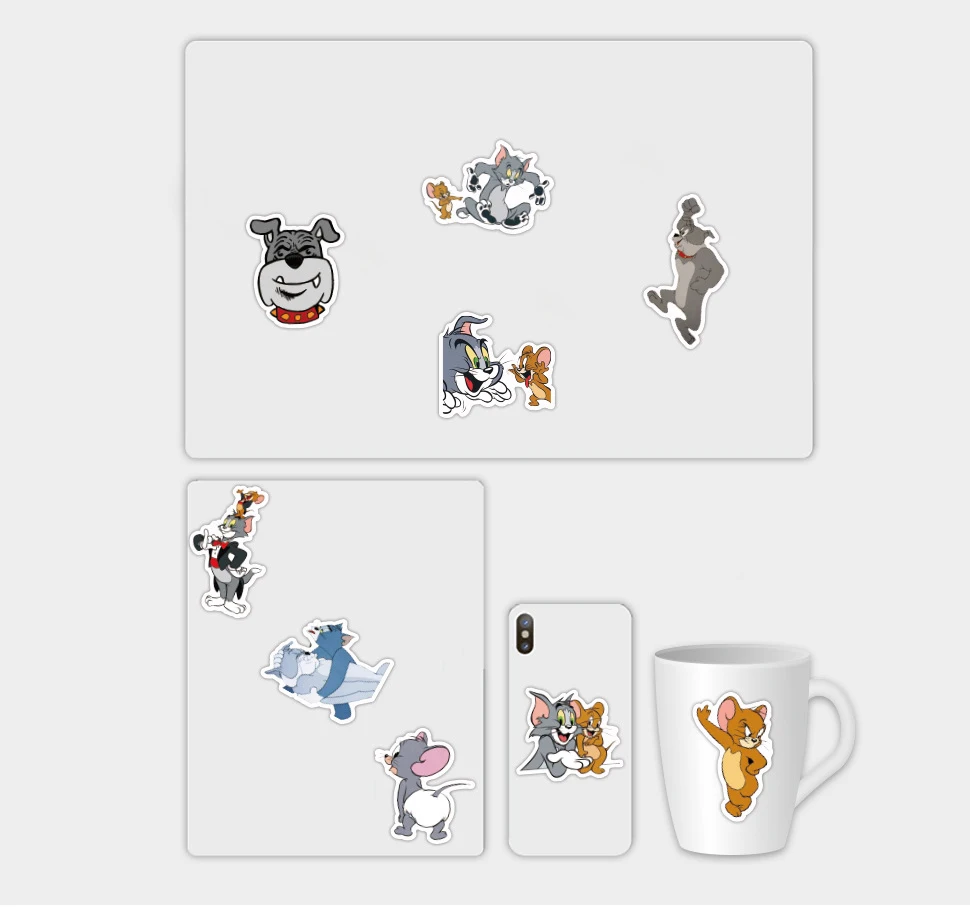 На велосипеде, ноутбуке, телефоне, скейтборде, сумках, багаже, холодильнике, автомобиле, стене, пенал так далее.