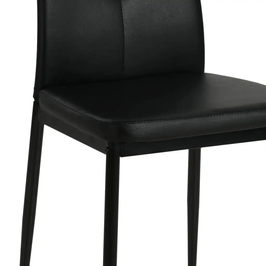 Черный цвет Материал: искусственная кожа + деревянная рама + стальные ножки Размеры: 43x43,5x96 см (Ш x Г x В) Ширина сиденья: 43 см Глубина сиденья: 40 см Высота сиденья от земли: 45,5 см Доставка включает в себя 2 обеденных стула Легко собрать Материал: хлопок: 5%, ПВХ: 95%