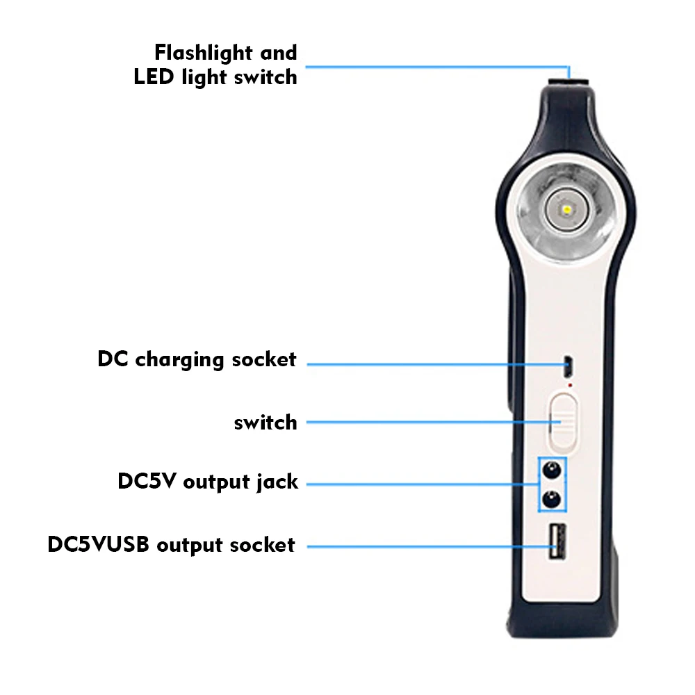 1. Многоразовый солнечный генератор является экологически чистым и энергосберегающим и может использоваться в солнечных местах. 2. Оснащенный usb-кабелем для зарядки, вы можете использовать встроенный аккумулятор большой емкости для легкой зарядки электронных продуктов, вы можете заряжать мобильные телефоны, MP3, MP4, цифровые камеры и другие электронные продукты. 3. Белый светодиодный светильник и освещение, низкое энергопотребление, низкая яркость, более прочный в использовании, постоянный ток IC драйвер, хорошая стабильность. 4. Подходит для внутреннего освещения, наружного освещения, отключения питания, кемпинга, домашнего освещения и зон без электричества. 5. Оснащен функцией радио.