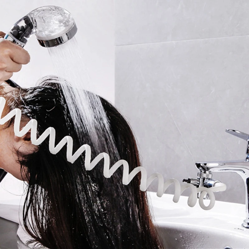 4. Long Telescopic Shower Hose - The elastic telescopic shower hose is made of premium PP plastic, non-toxic, high pressure resistance and durable to use.