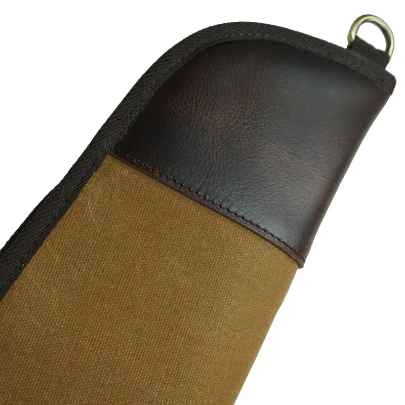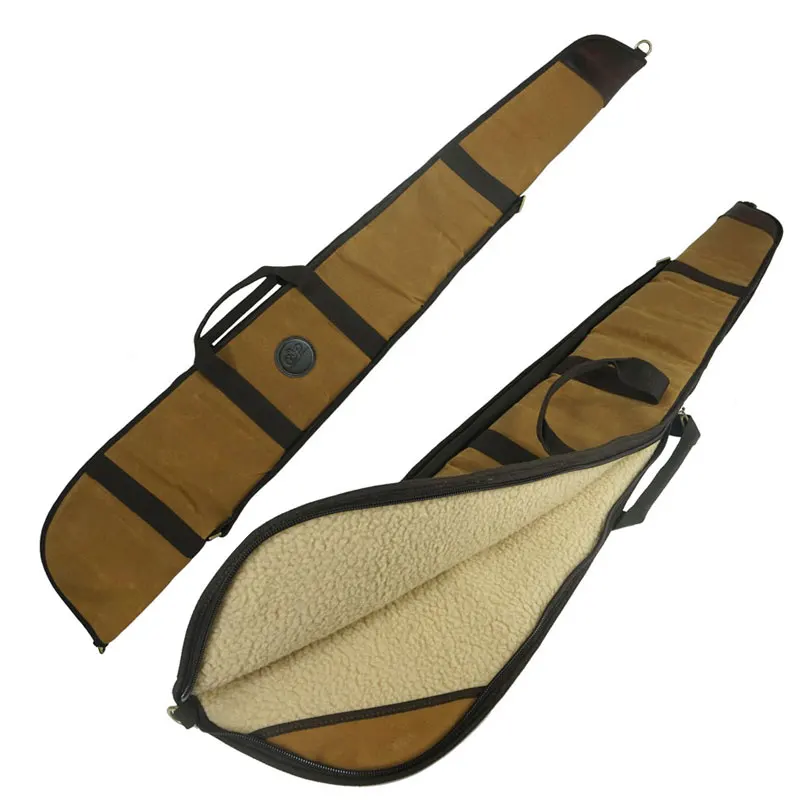 Изготовлен из 2,0 мм воловьей кожи и брызгозащищенного полотна объемом 16 унций, эффективно предотвращает намокание росы при путешествии охотника по лесу. Внутренняя накладка на чехол для пистолета изготовлена из губки высокой плотности толщиной 5 см и волоса ягненка толщиной 8 см, что хорошо защитит дробовик. Использование нейлоновой молнии № 10, с высококачественным металлическим слайдером, простой в использовании и пылезащитный. Мешок для пистолета можно сложить для удобного хранения. При необходимости можно сложить его как подушку для отдыха. Габариты: 52 "X 9" X 1- 1/2 ", вес: 1 кг.