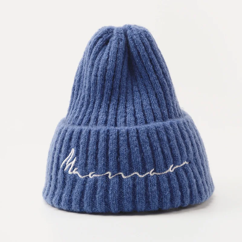 Зимняя вязаная шапка, милая шапка, детская утепленная осенне-зимняя теплая вязаная шапка, шерстяные шапки с вышивкой для мальчиков и девочек