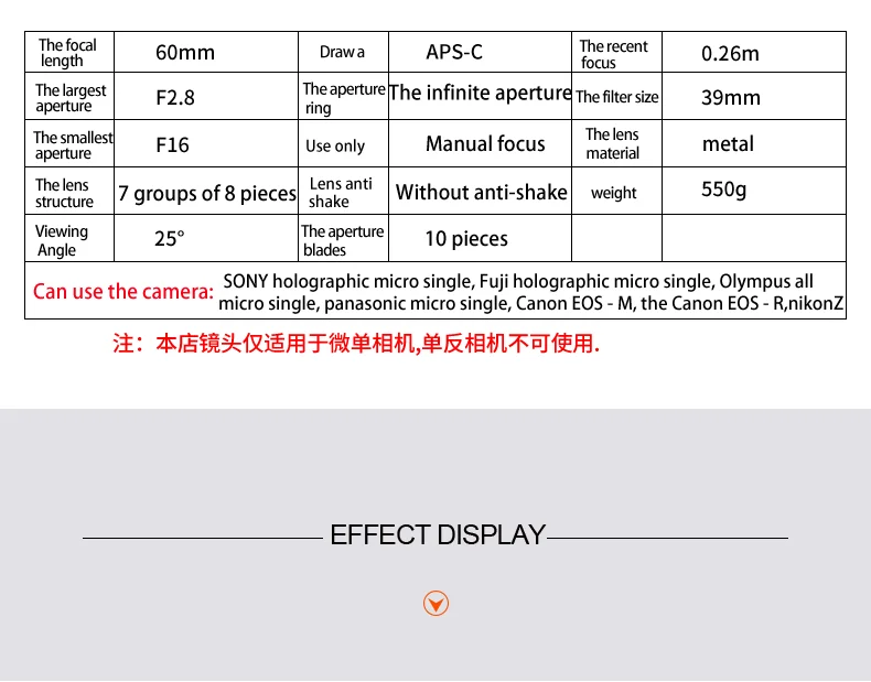 Бренд: 7 ремесленников Максимальная диафрагма: f/2,8 Фокусное расстояние: 60 мм MPN: не применяется Номер модели: 60mmF2.8 Цвет: черный Макро Увеличение: 1,000 раз Совместимый бренд: F16.0 Тип стабилизации объектива: нет Размер УФ-фильтра объектива: 39 мм Количество лезвий диафрагмы: 10 лезвий Максимальное увеличение: 0,100 раз Режим фокусировки: ручной фокус Тип: объектив с фиксированным фокусом Подходит для: Nikon Z - Mount UPC : 764823629540