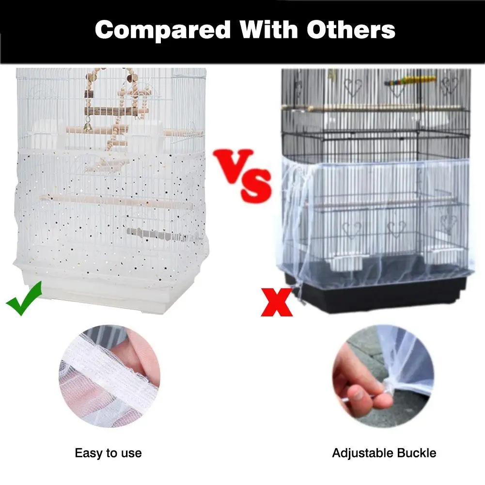 Держите пол в чистоте: нейлоновая сетчатая Ловца семян прочно устанавливается вокруг клетки для птиц, чтобы предотвратить попадание перьев и остатков пищи из среды размножения в птичьей клетке вне клетки.