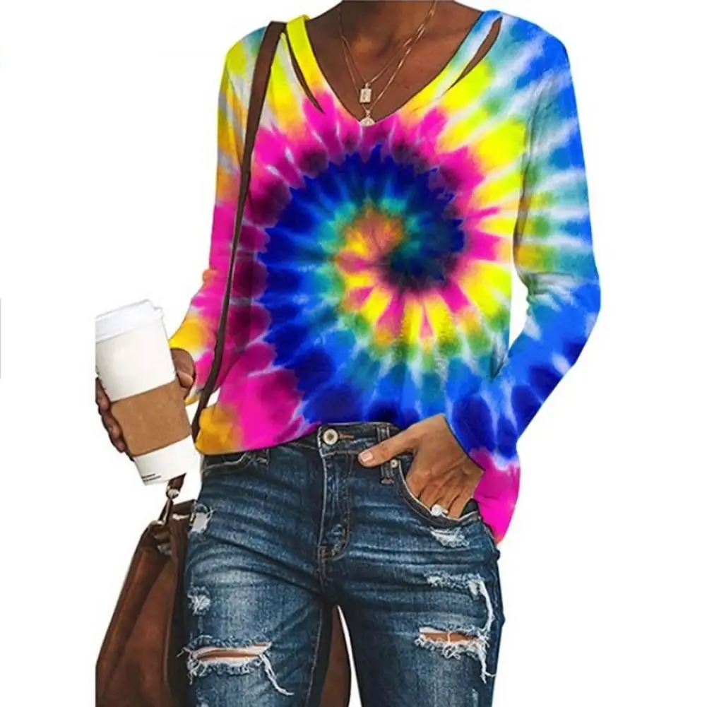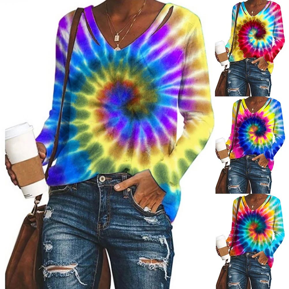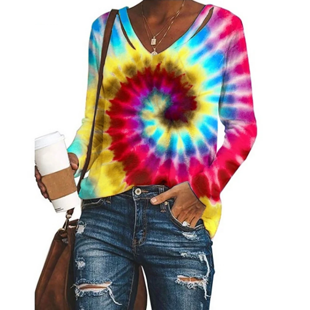Женская Свободная Повседневная футболка с длинным рукавом и v-образным вырезом, летняя и осенняя блузка