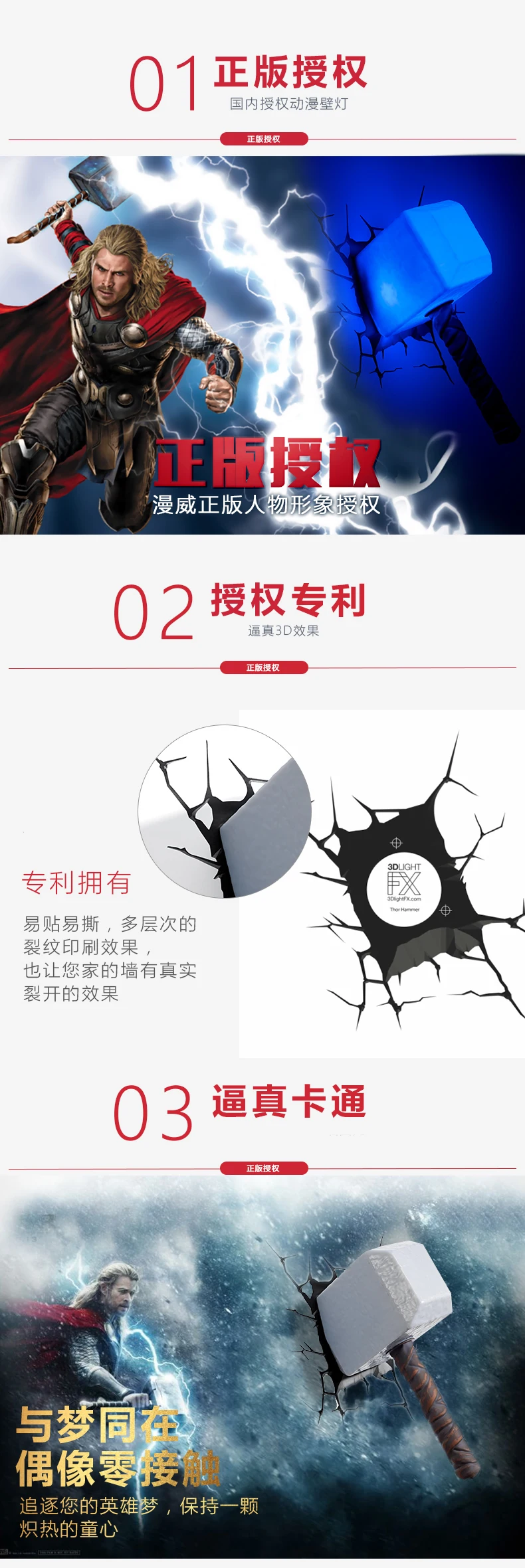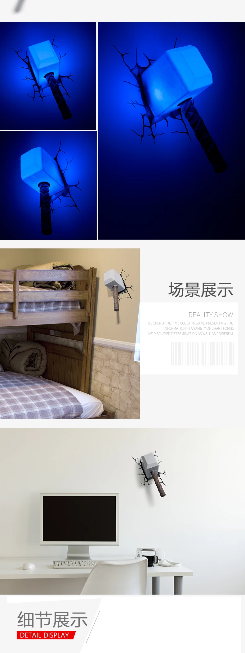 Acecorner Мстители Марвел Тор молот Свет нин супергерой 3D Светодиодная настенная лампа креативная наклейка Светильник спальни детский подарок