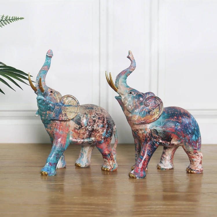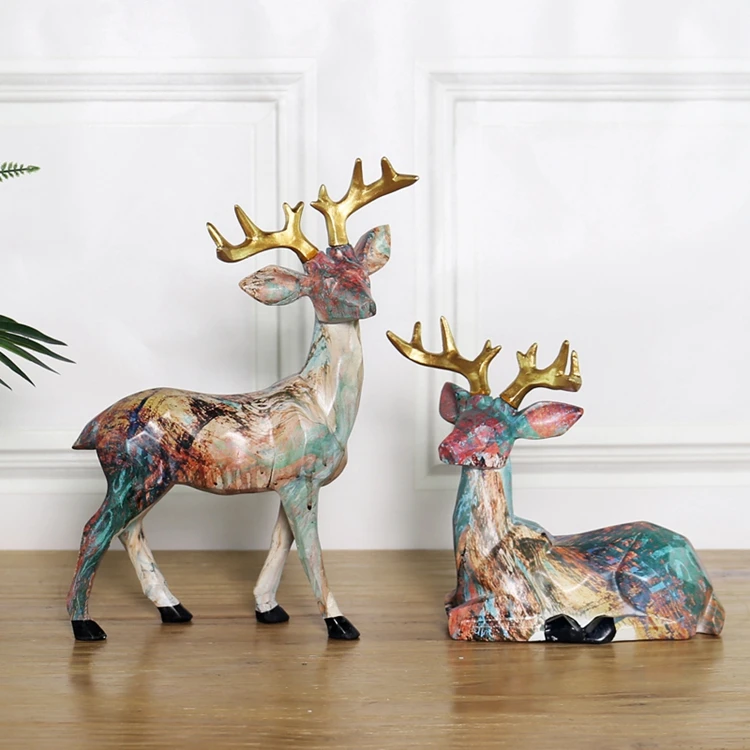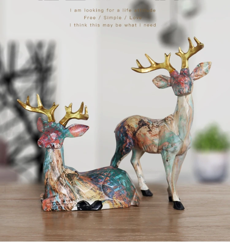 Животные Скульптура Лошадь Фигурка лося Слон Олень OX Смола ремесла статуя модель дома офиса масляная роспись искусство украшение подарок