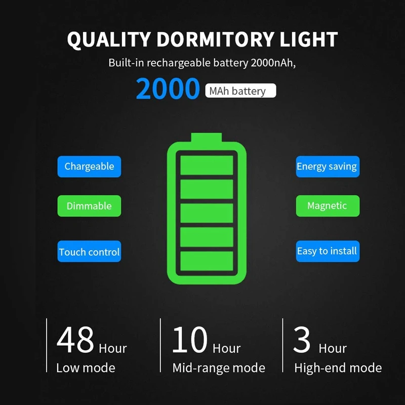 Сенсорное управление: Коснитесь бокового переключателя, чтобы включить светильник, 3 режима управления соответственно 20% /50%/100% яркости, выберите наиболее подходящий светильник для шкафа, когда вы используете его для экономии заряда батареи, которая сделает вашу жизнь более яркой.