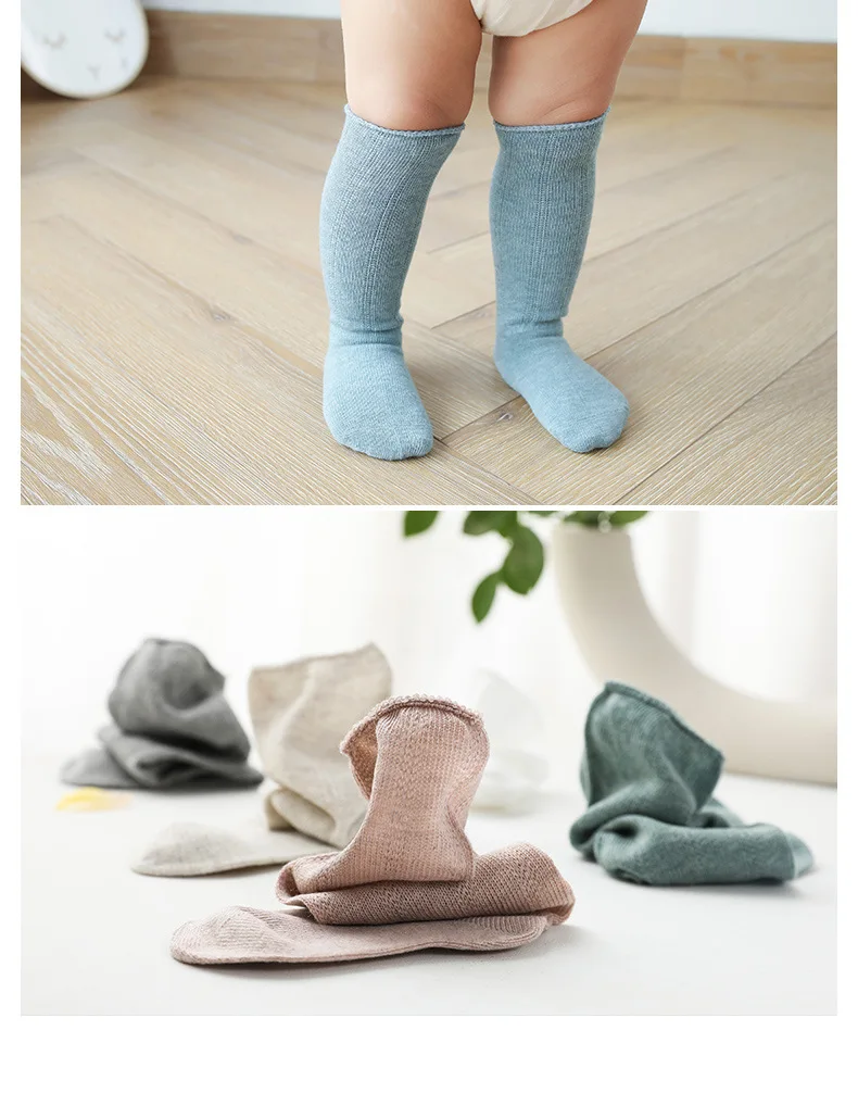 Носки для новорожденных длинные Детские теплые носки для малышей зимние леггинсы носки для маленьких мальчиков и девочек Однотонные