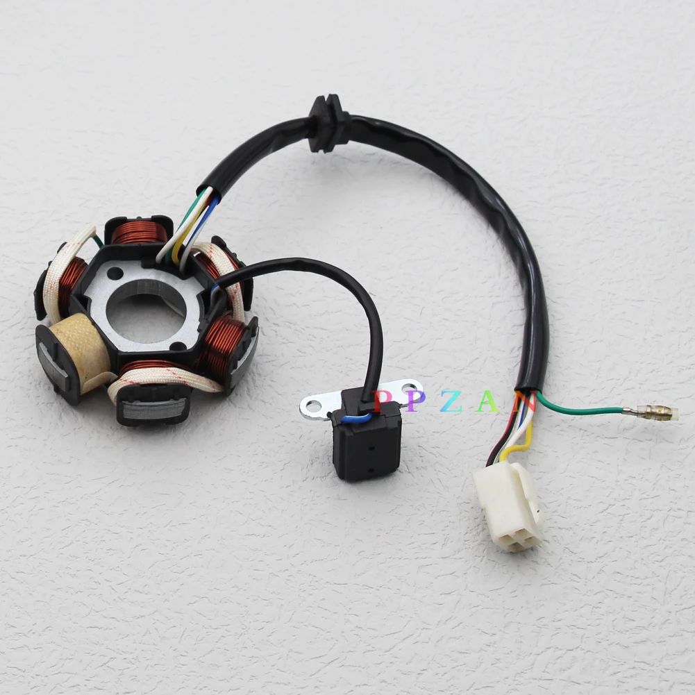 Китайский 6 статор катушки Магнето для двигателей GY6 150cc.Этот китайский статора Магнето в запасная часть для многих 4-ходовой китайский квадроциклы, велосипеды для езды по бездорожью, картинг и скутеров.Этот статор подходит для моделей GY6 125cc.Описание статора:6 катушек 5 проводов-4 контактный разъем с 3 провода (белый, желтый и зеленый)2 отдельных провода2 болта крепленияСпусковой механизмИзмерение центрального отверстия: 29 мм [1,14 "]Общее измерение: 83 мм [2,26 "]Высота одной катушки: 25,8 мм [1,01 "]Измерение крепления: от центра до центра 42 мм [1,65 "]Совместимость с GY6 125cc 4 тактныйПосылка включает в себя: 1 x GY6 6 статор катушки МагнетоПримечание: не покупайте, если вы не подтвердите, что можете их использовать, просто спросите нас о подробностях, спасибо.