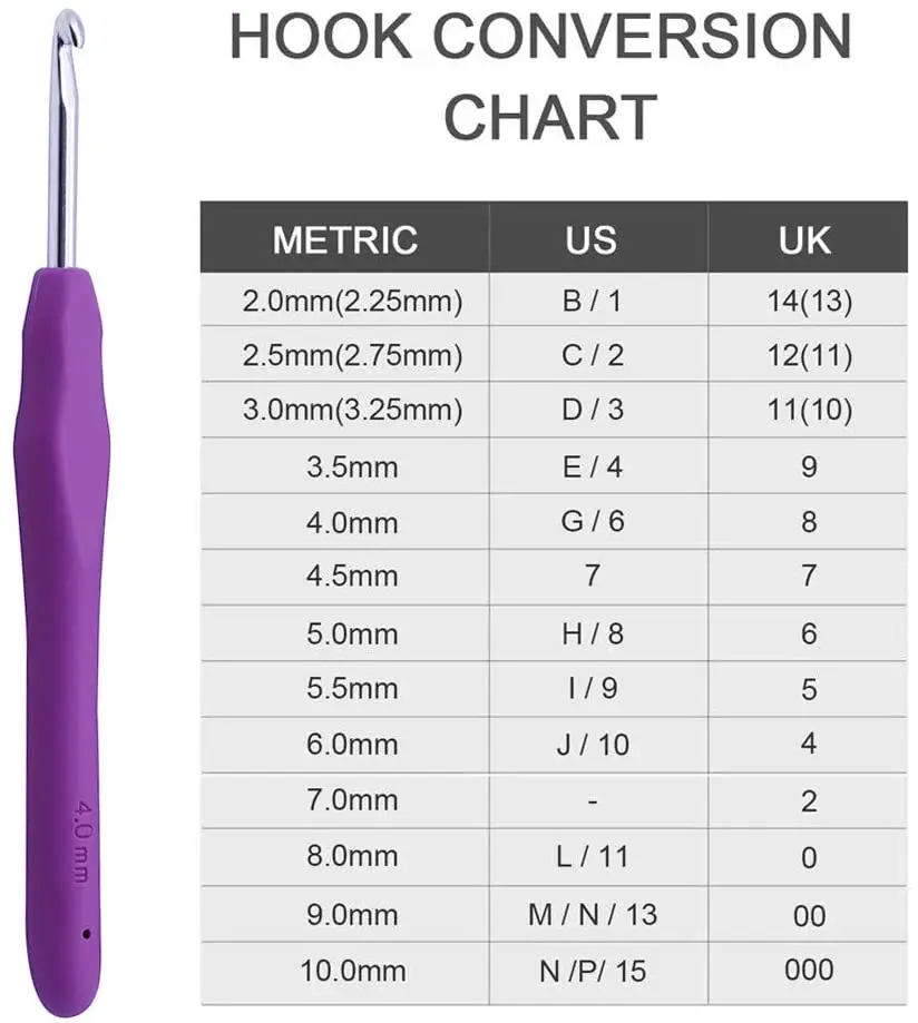 Размеры диапазоны: B(2 мм),C (2,5 мм), D(3 мм), E (3,5 мм), G(4 мм), 7 (4,5 мм), H(5 мм), I (5,5 мм), J(6 мм), 7 мм, L(8 мм), M/N(9 мм) И N/P(10 мм)