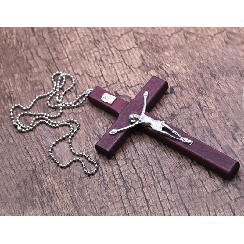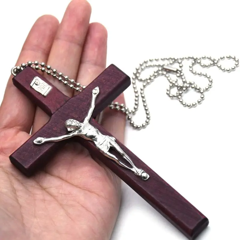 Деревянная религиозная Подвеска "Иисус" крест ожерелье христианское распятие кулон с цепочкой ювелирные изделия Шарм подарки для мужчин