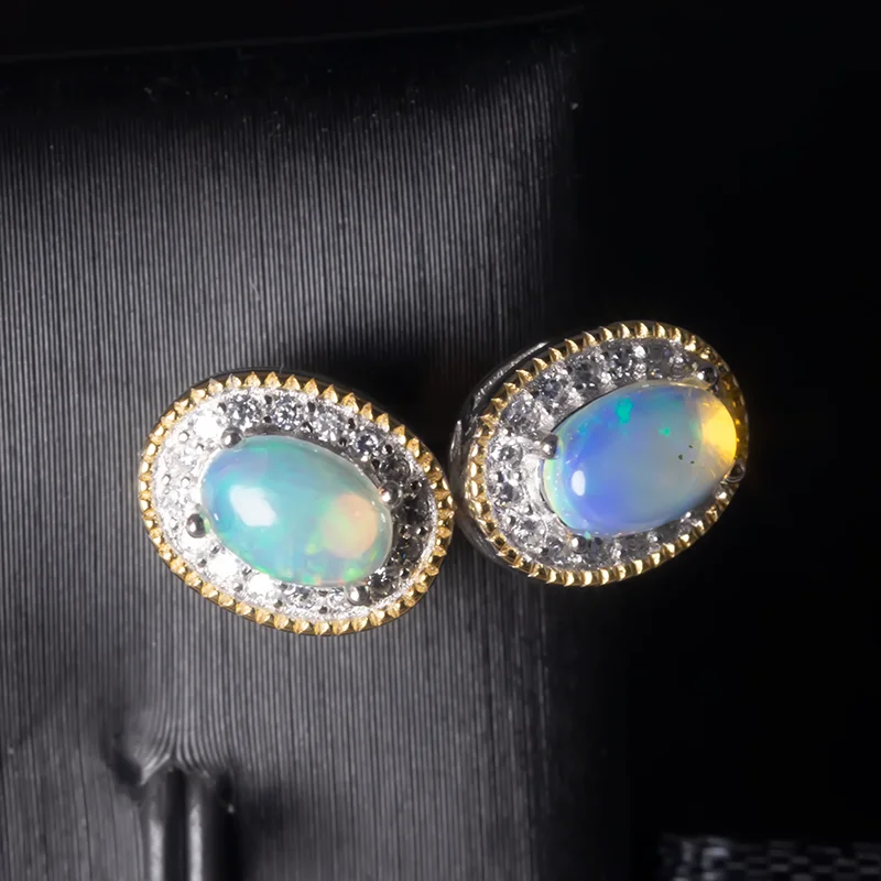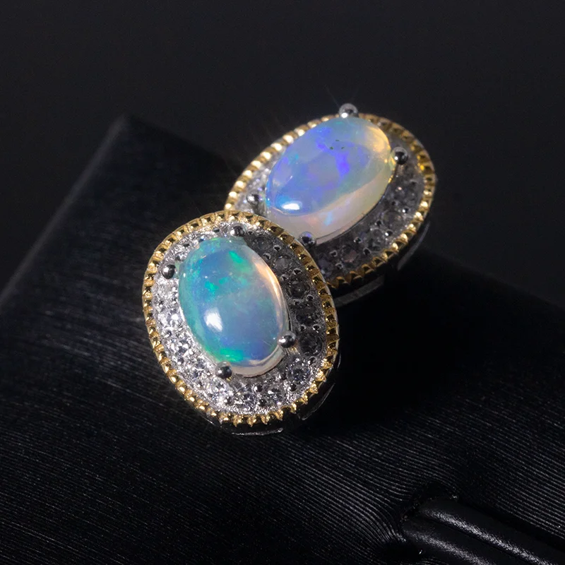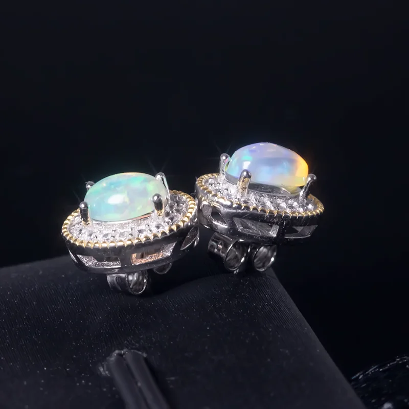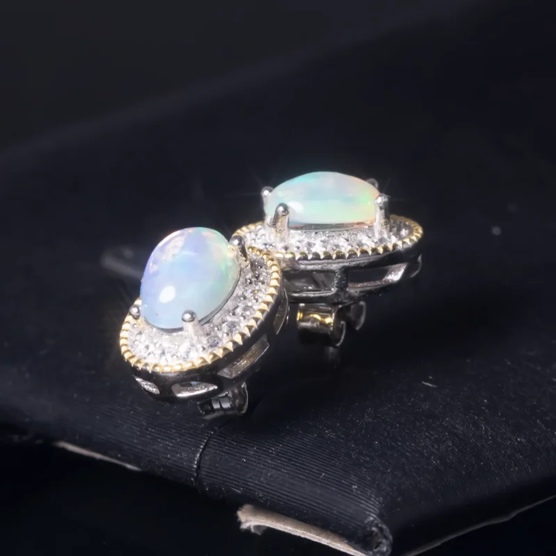 Gem Type:natrual natural opal Main Stone Weight Size: Approx.(4*6mm)*2 Stone Color: white Stone Shape:ellipse Metal Type: 925 Silver Metal Surface Treatment: Platinum plating Side Stone: Cubic Zircon Gem Weight: Approx1.1ct