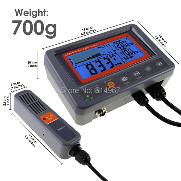 С внешним датчиком CO2 4,5 м для использования в закрытом пространстве
