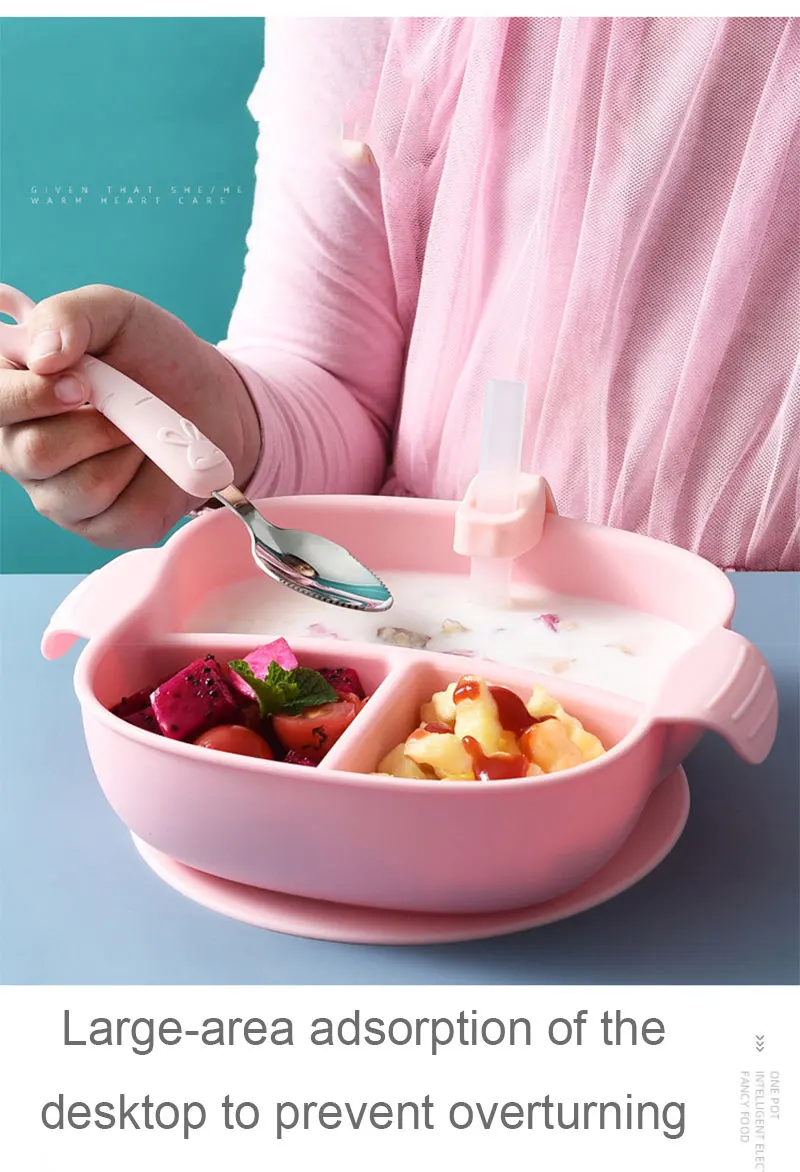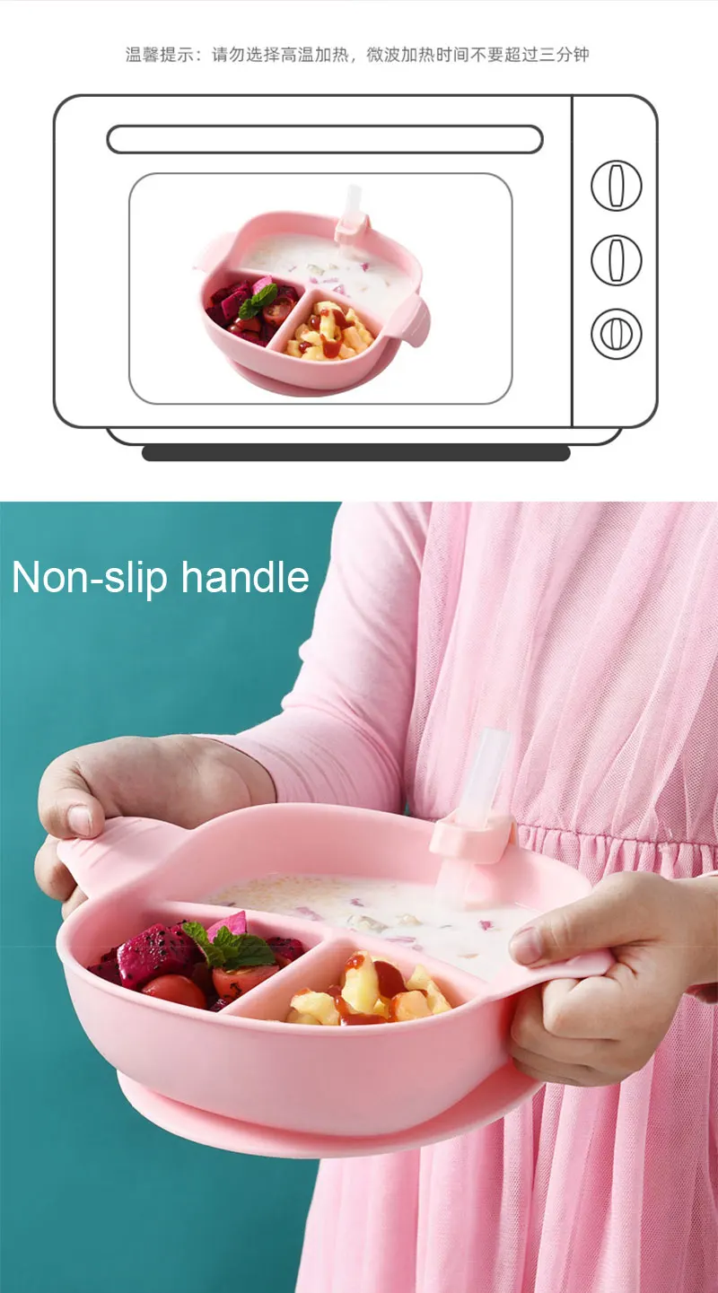 Детский силиконовый набор для кормления, пищевая детская тарелка для еды, водонепроницаемая Нескользящая посуда для кормления младенцев, миска для питья с соломой