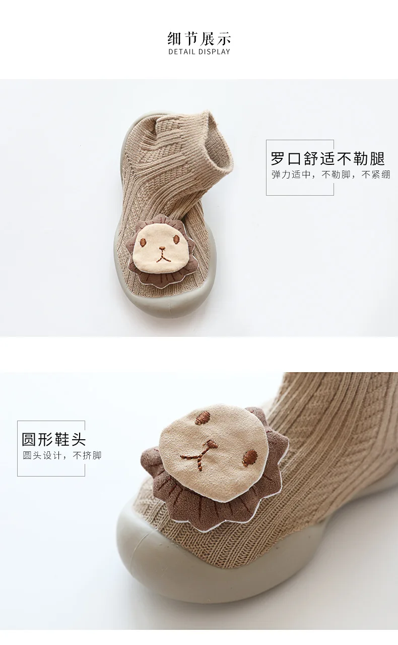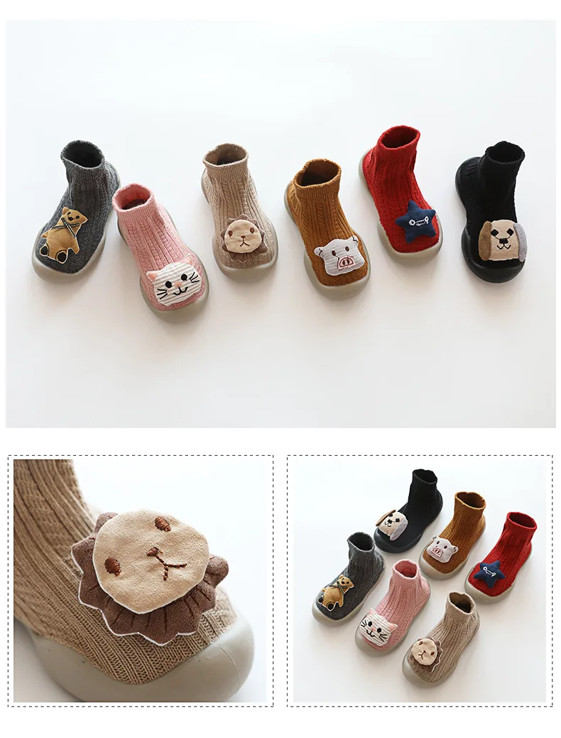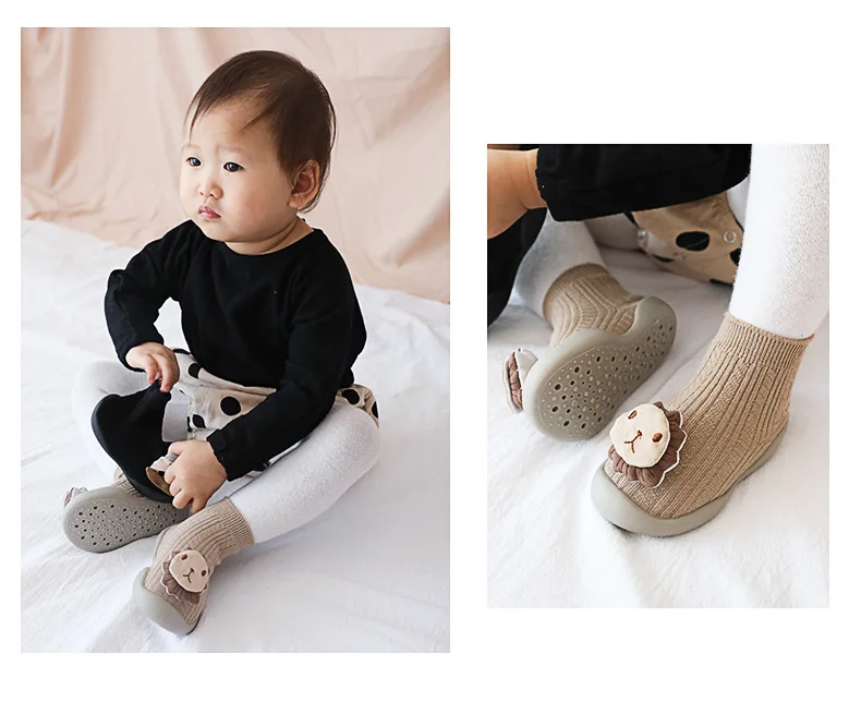 Детские вязаные носки-тапочки с изображением куклы из мультфильма; Нескользящие домашние носки на резиновой подошве для новорожденных; Сезон осень-зима