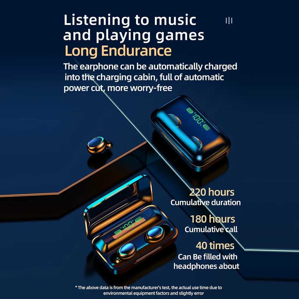 Это истинное беспроводное устройство Bluetooth наушники оснащены чипом Bluetooth 5,0, Автоматическое Сопряжение загрузки, Встроенный активный шумоподавление IC, HD вызов и большая емкость Срок службы батареи. Особенности этого продукта 14,2 графеновая диафрагма, профессиональная звуко-передающая сеть из сплава, Высококачественный звук, интеллектуальное шумоподавление, чувствительность 108 дБ, Бескислородная Медная звуковая катушка. Два способа подключения: Один/двойной бесплатно использовать, одно ухо слушать, наслаждаться в одиночестве, слушать Для Hi-Fi стерео в обоих ушах. Интеллектуальная сенсорная работа: Автоматическое включение/выключение/ответ/Отклонение/последняя песня/следующая песня/вызов Siri. Он обеспечивает 5,0 Bluetooth Игра без задержки, и электрическая кабина может быть использована в качестве мобильного телефона Кронштейн и мобильный телефон аварийный источник питания для многофункционального использования. Поддержка наушников Интеллектуальный сенсорный экран, кнопка отклонения С IPX6 Водонепроницаемый Оценка, не беспокойтесь о дожде и поте Бинауральный hd-вызов, 5,0 Автоматическое Сопряжение загрузки, CVC8.0 Встроенный активный шумоподавление IC.Параметр: