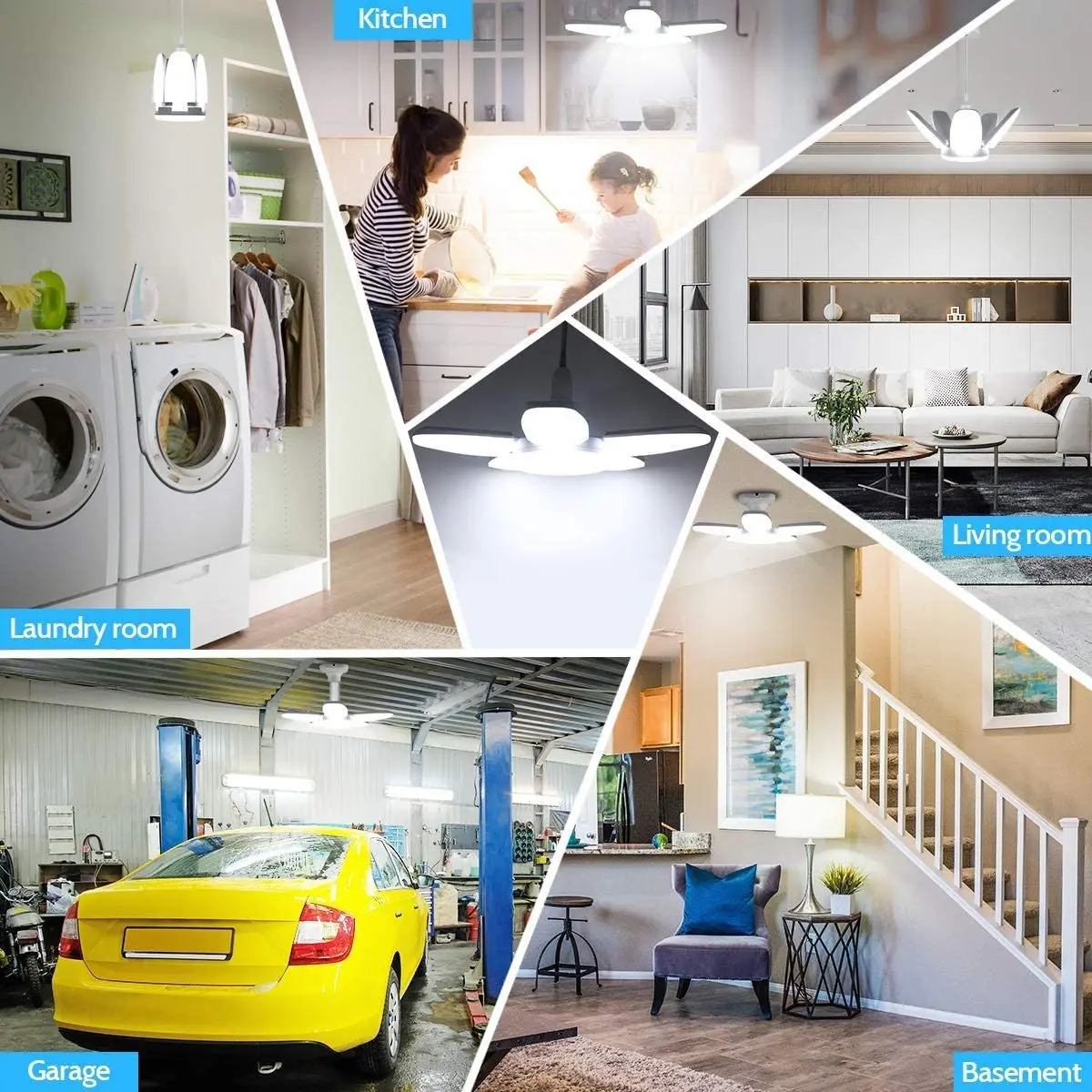 Простота установки: светодиодный светильник для гаража s со стандартным основанием E26/E27, гаражный светодиодный светильник прост и удобен в установке. Нет инструментов, Нет проводки и нет необходимости в профессиональных электриках, установка так же проста, как завинчивание в лампочку-светильник. Примечание: Перед установкой выключите питание.