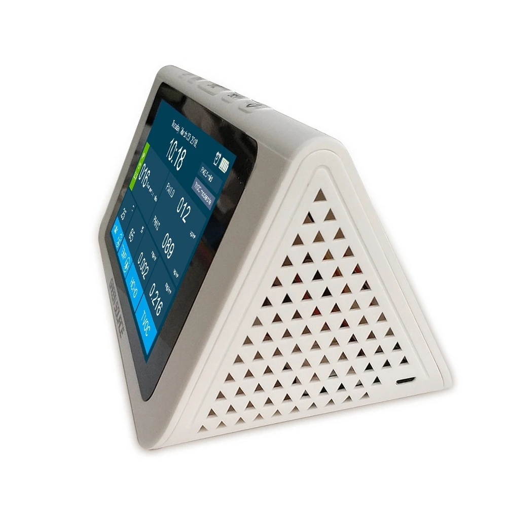 Этот детектор качества воздуха с большим экраном 24H-это многофункциональный детектор, мониторинг в реальном времени внутренней влажности HCHO,PM2.5,TVOC и температуры.