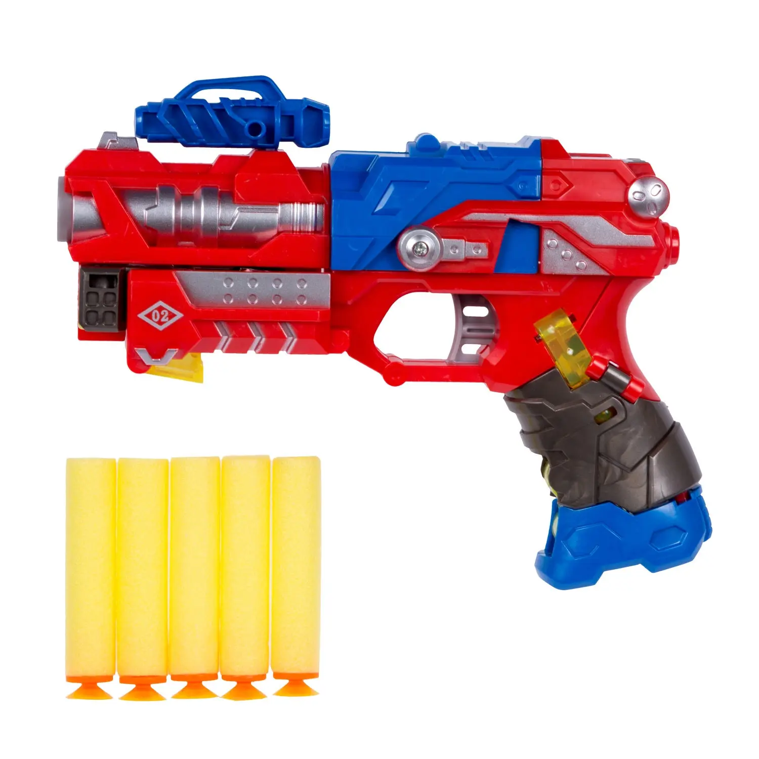 В комплекте 5 патронов с мягкими наконечниками-присосками, которые легко держатся на любой плоской поверхности.