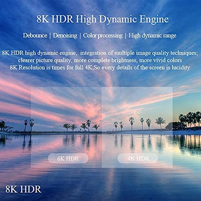 8K + 3D + H.265: ТВ-зона Android поддерживает декодирование и воспроизведение форматов o и video. Наслаждайтесь видео 8K HD. Тысячи игр на Android могут быть воспроизведены на 8K sn. Кроме того, этот Телевизор поддерживает 3D, вы можете наслаждаться визуальным праздником. Декодирование H.265 поможет вам сэкономить 50% широкополосных ресурсов.