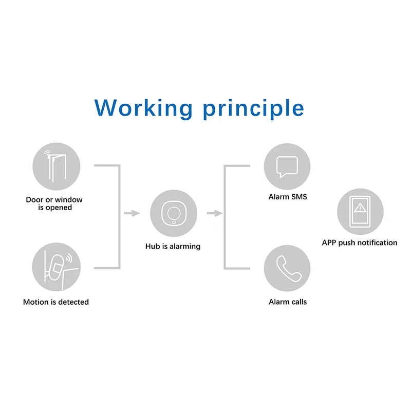 3. Когда происходит незаконное вторжение, хост издаст сигнал тревоги 110 дБ и мигающий светильник на месте происшествия, и уведомит пользователя, подтолкнув информацию о тревоге на мобильный телефон пользователя.