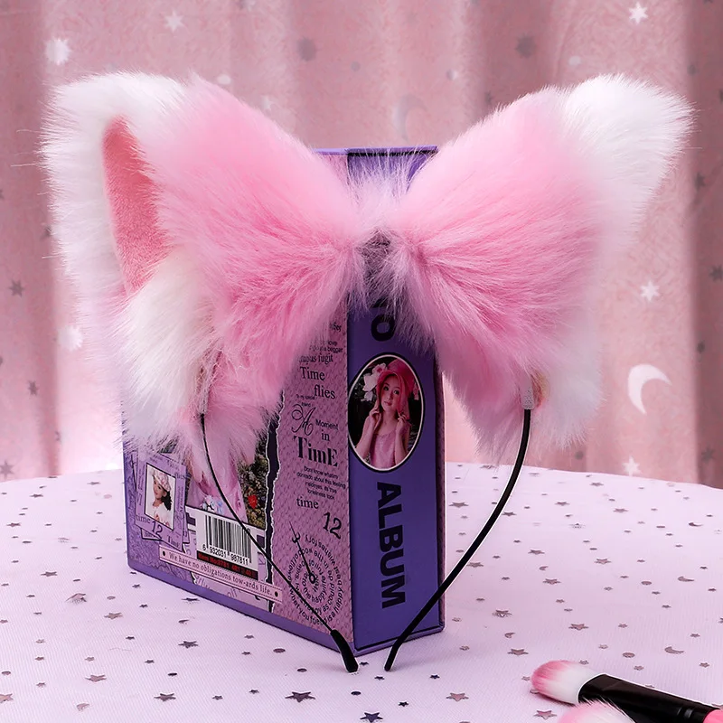 Длинная Меховая повязка на голову с кошачьими ушками, аниме косплей, микетсуками, Лисий обруч для волос, плюшевый меховой зажим для волос, праздничный костюм