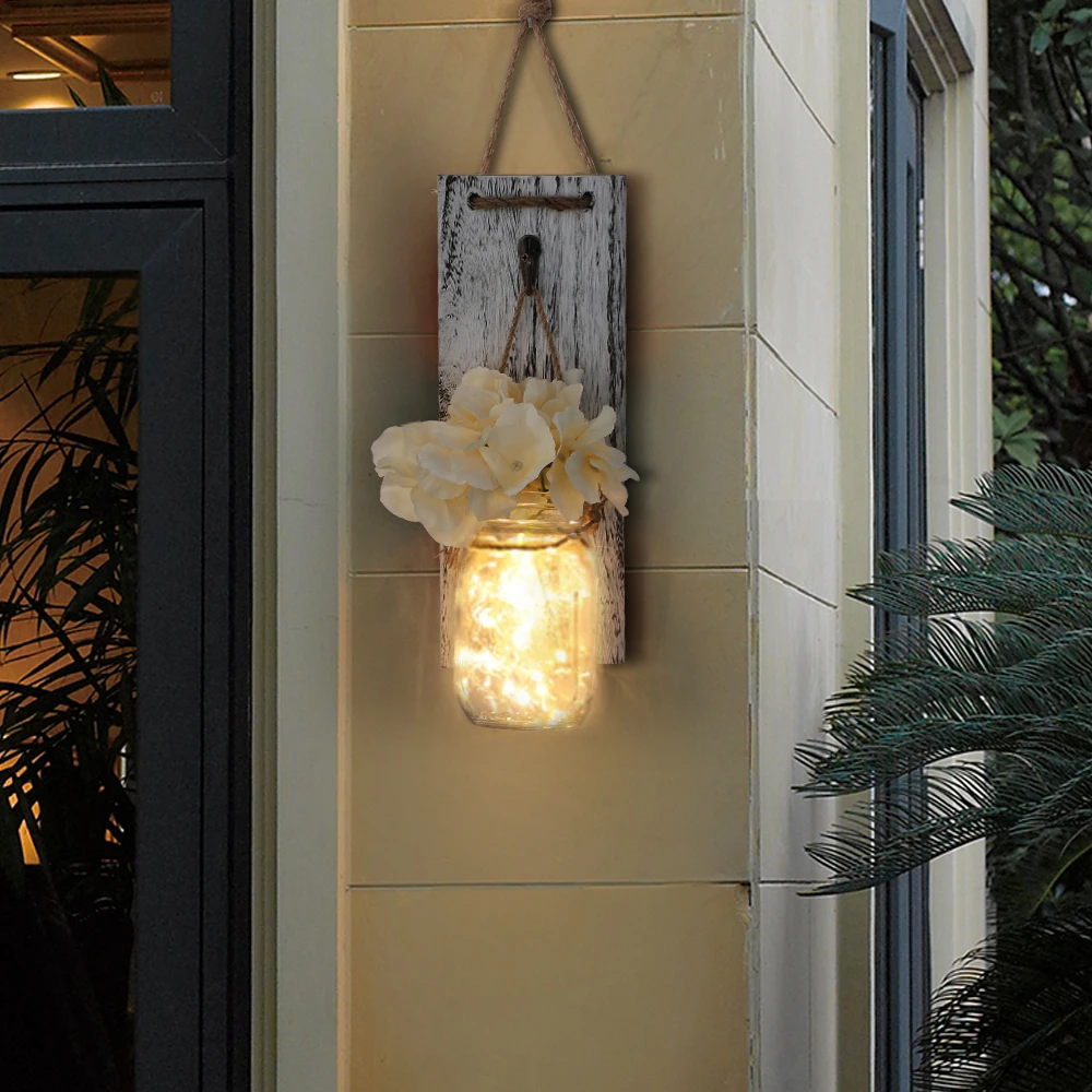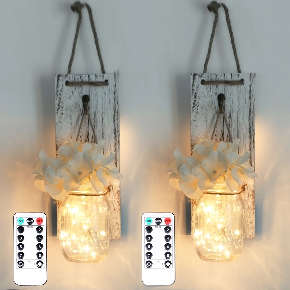 Упаковка: 2 * банка для Мейсона, 2 * цветы (54 9 # orange),2 * гирлянда для лампы (2 м 20 Лампа Теплая Белая),2 * плата, батарея в комплект не входит