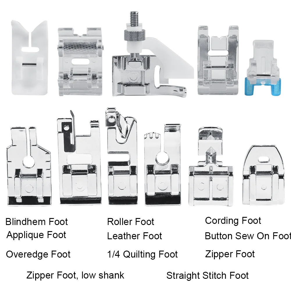 Этот комплект включает в себя 11 прижимных лапок с различными функциями, такими как прямой стежок, лапка на молнии, 1/4 стеганая лапка и т. Д., для удовлетворения ваших различных потребностей. Эти прижимные ножки являются практичными деталями швейных машин, что делает вашу швейную работу гладкой и высокой эффективностью.