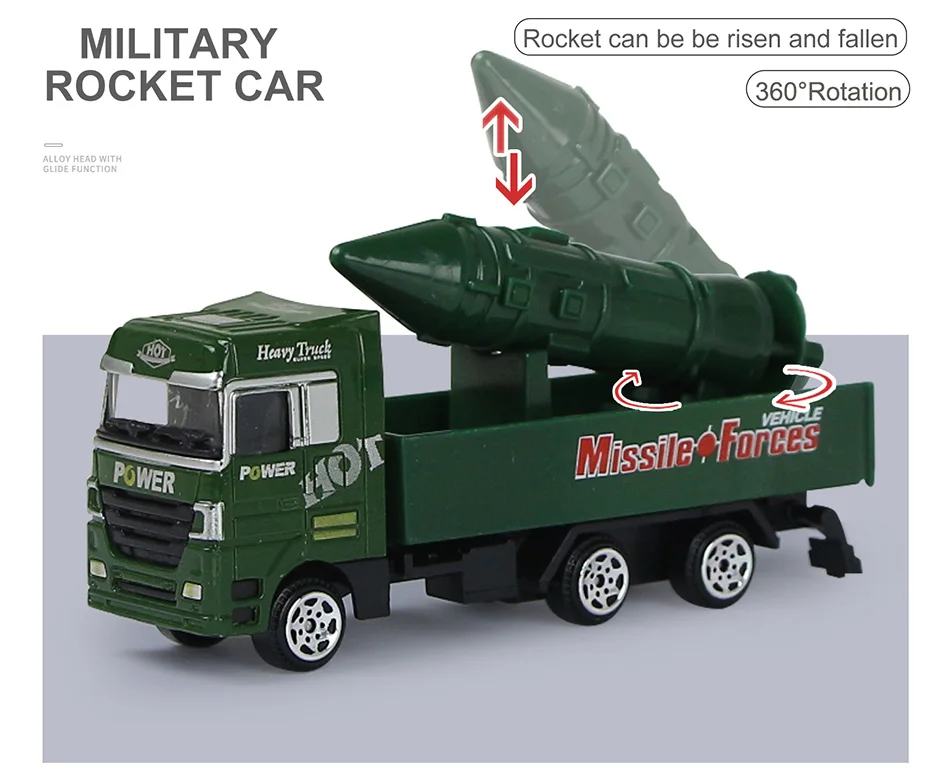 Материал: АБС + сплав Размер автомобиля: как показано на картинке Цвет: красный, синий, желтый, зеленый, армейский зеленый Возраст: старше 3 лет Посылка включает в себя: 1 шт.