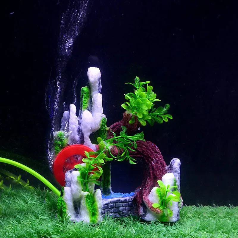 Saim, украшения для аквариума, Горный пейзаж, смола, декоративные камни, каменная пещера, водное колесо, пластиковые украшения для растений