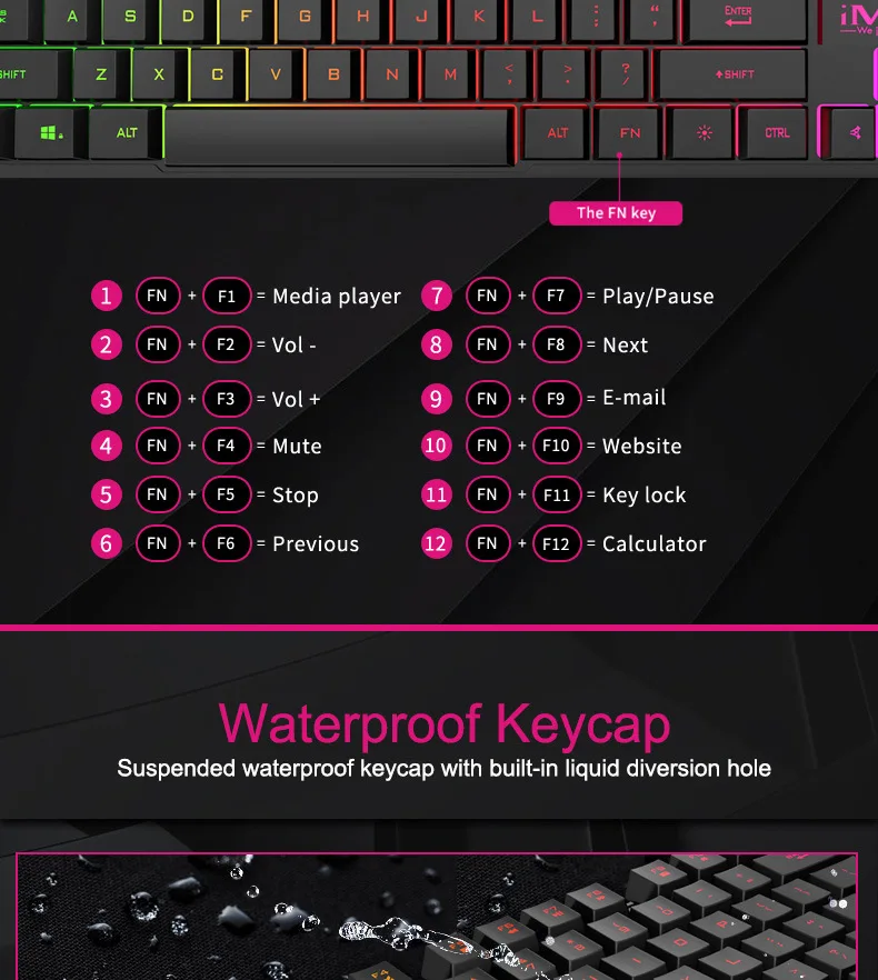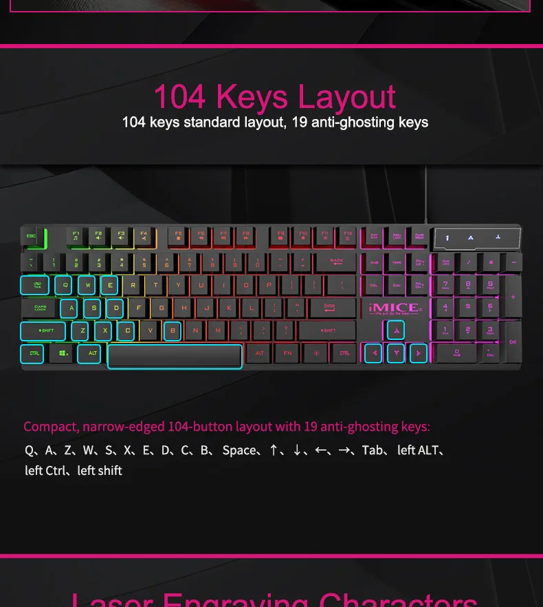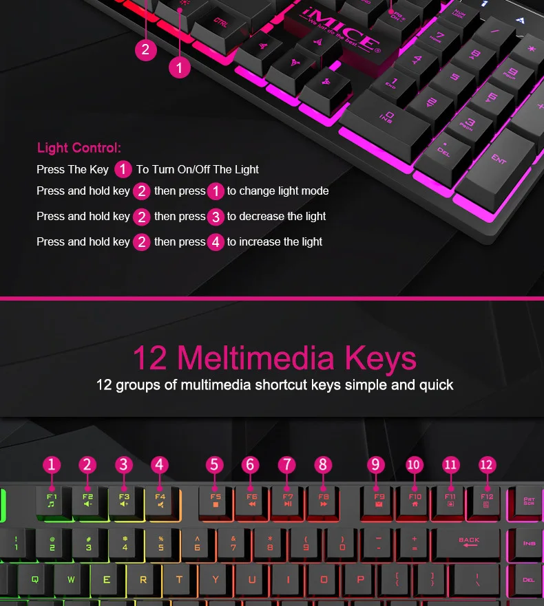 iMICE AK600 New Gaming Keybaord 104 Keycaps 3 Color LED Backlit Keybaord Mechanical Click Felling Keyboard for Notebook PC