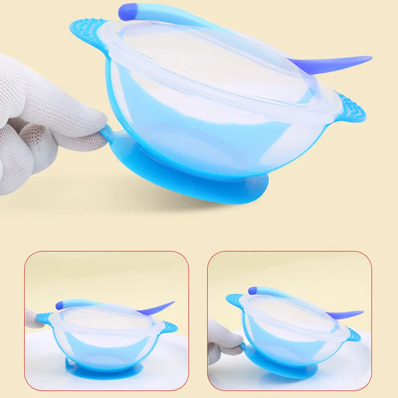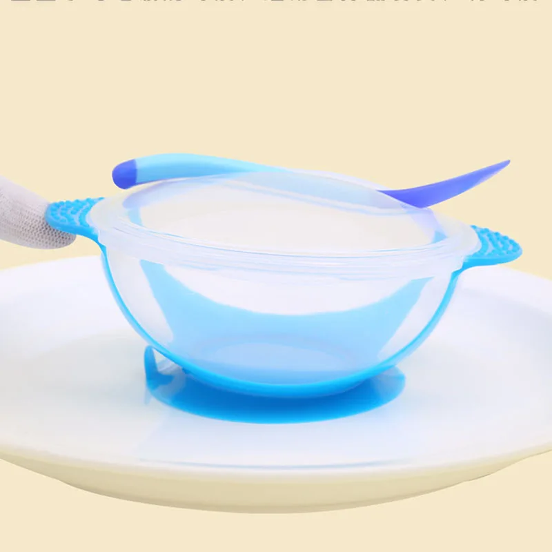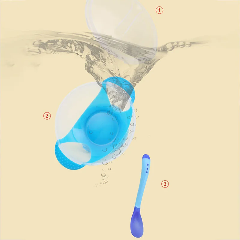 Детская столовая утварь для кормления набор противоскользящая тренировочная тарелка высокоемкая герметичная чаша с присоской температурная ложка